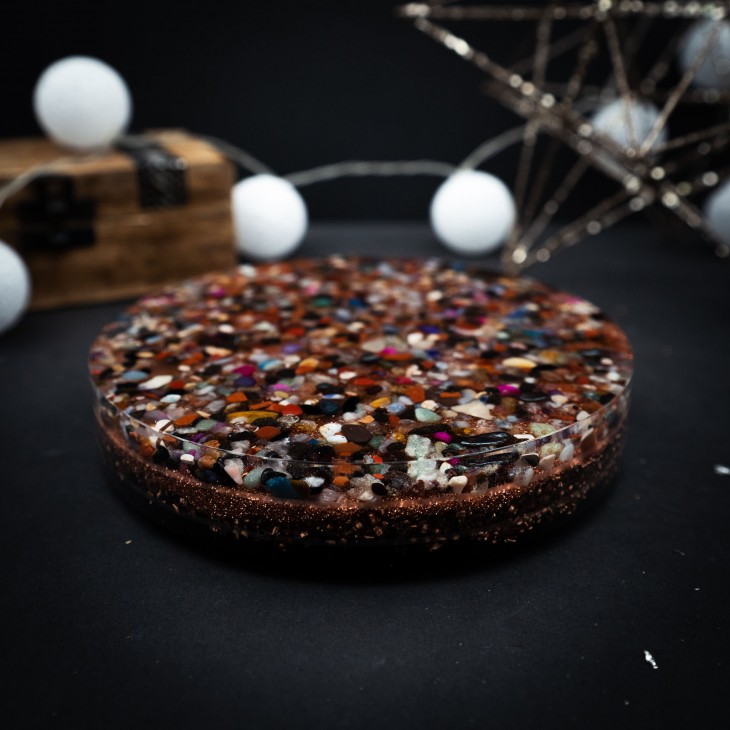 The orgonite charging plate can also be used to energize food, vegetables, fruits. Some people bought it for cleaning stones, crystals, crystal jewelry, and even prophetic cards.