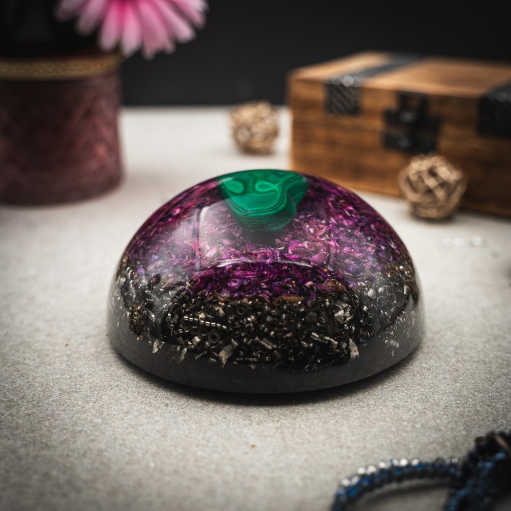 The orgonite affects on electrosmog radiation. These are all electronic devices, telephones and mobile networks. It is very good at protecting against geopathic radiation. Geopathic radiation is terrestrial radiation (water currents, Curry's, Hartmann’s network) and cosmic radiation (radiation of the moon, sun and space). We use it also for energy protection. More and more customers are complaining that people and the environment are the ones who get the most energy out of them daily. Orgonite is the best protection for our energy from stress, people and the environment. It also improves cell regeneration, protects the electromagnetic field of the individual, promotes better energy flow and removes blockages, both physical and mental.