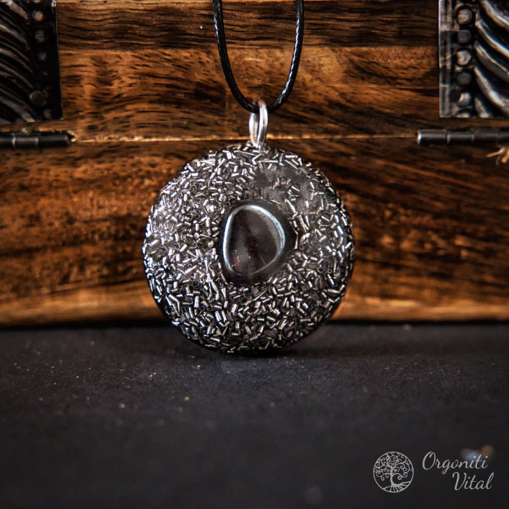 Hematite - orgonite round pendant