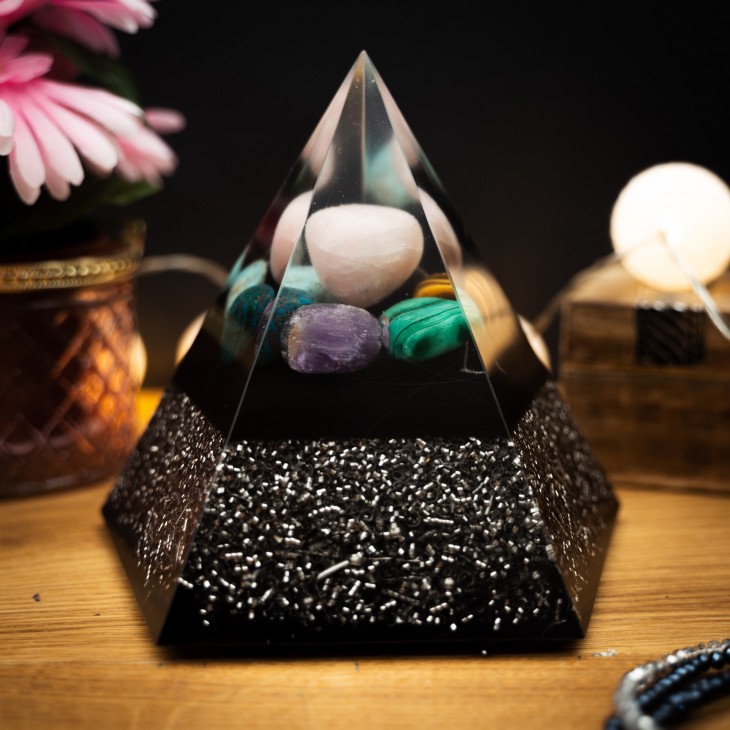 Vsak orgoniti je unikaten in čaroben. Ker delamo nekatere orgonite v večjem številu, so lahko manjša odstopanja v obliki in velikosti kristala.