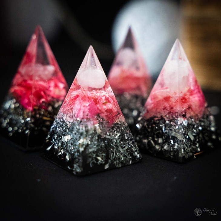 Vsak orgoniti je unikaten in čaroben. Ker delamo nekatere orgonite v večjem številu, so lahko manjša odstopanja v obliki in velikosti kristala.