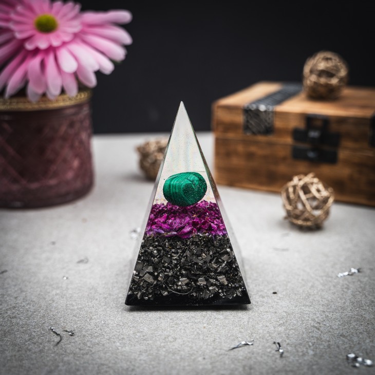 Vsak orgoniti je unikaten in čaroben. Ker delamo nekatere orgonite v večjem številu, so lahko manjša odstopanja v obliki in velikosti kristala.
