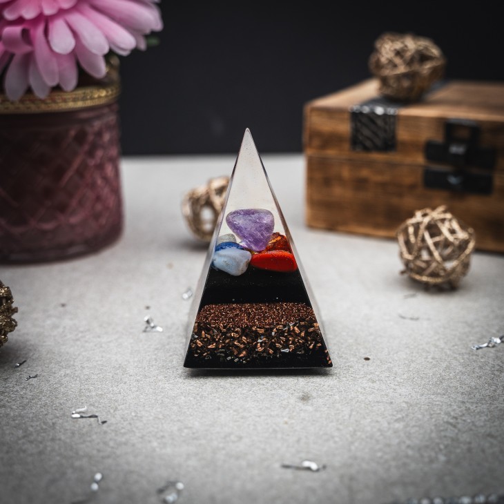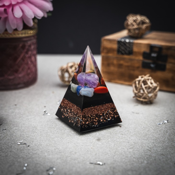Vsak orgoniti je unikaten in čaroben. Ker delamo nekatere orgonite v večjem številu, so lahko manjša odstopanja v obliki in velikosti kristala.