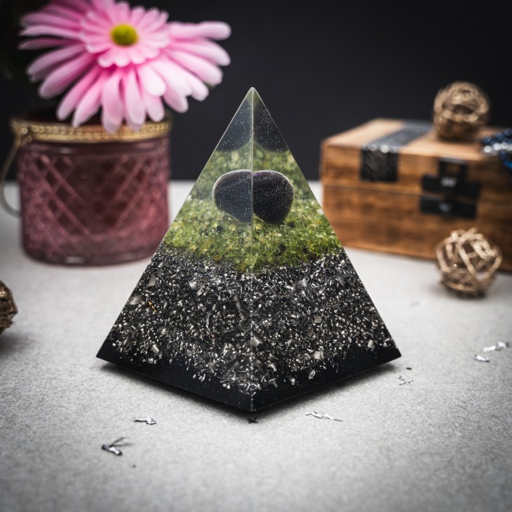 Vsak orgoniti je unikaten in čaroben. Ker delamo nekatere orgonite v večjem številu, so lahko manjša odstopanja v obliki in velikosti kristala.