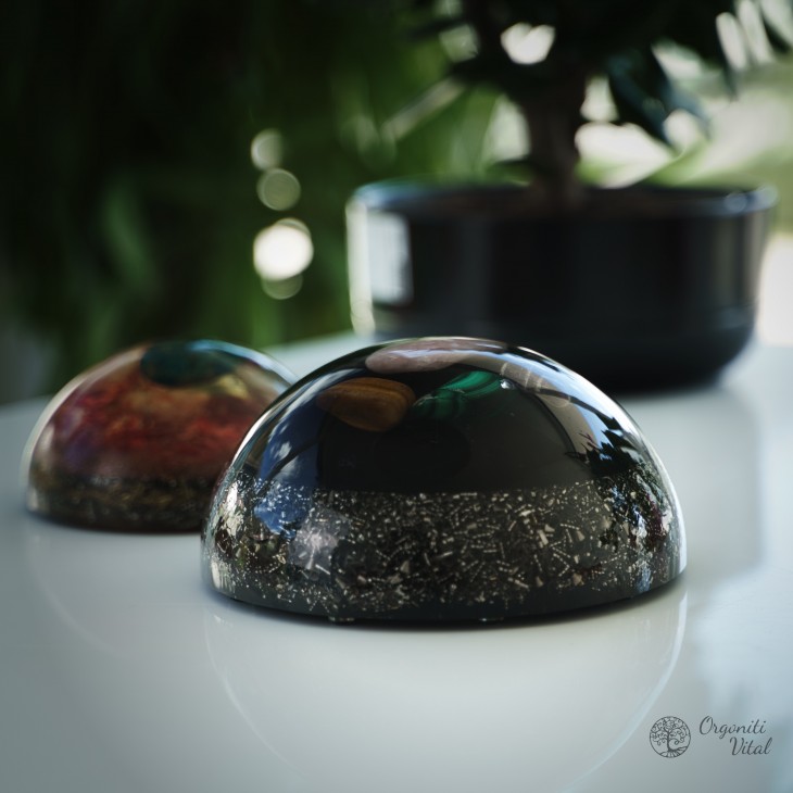 Vsak orgoniti je unikaten in čaroben. Ker delamo nekatere orgonite v večjem številu, so lahko manjša odstopanja v obliki in velikosti kristala.