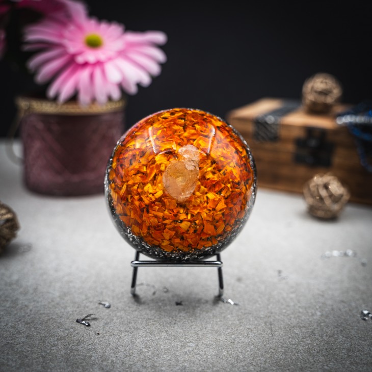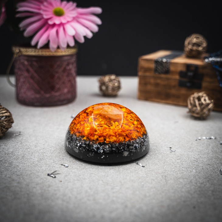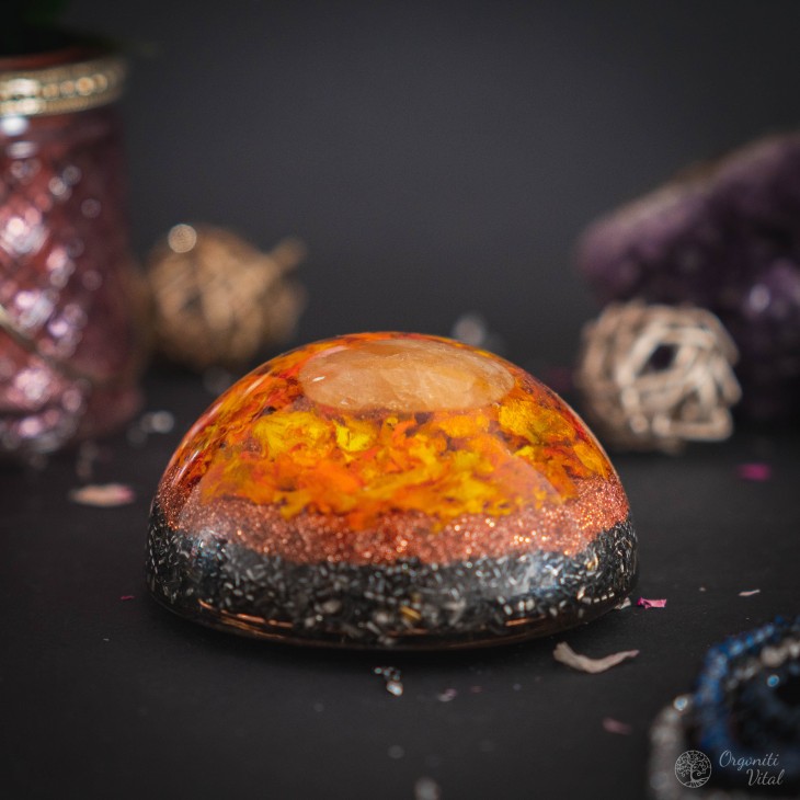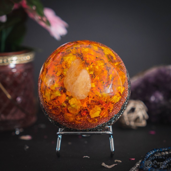 Vsak orgoniti je unikaten in čaroben. Ker delamo nekatere orgonite v večjem številu, so lahko manjša odstopanja v obliki in velikosti kristala.