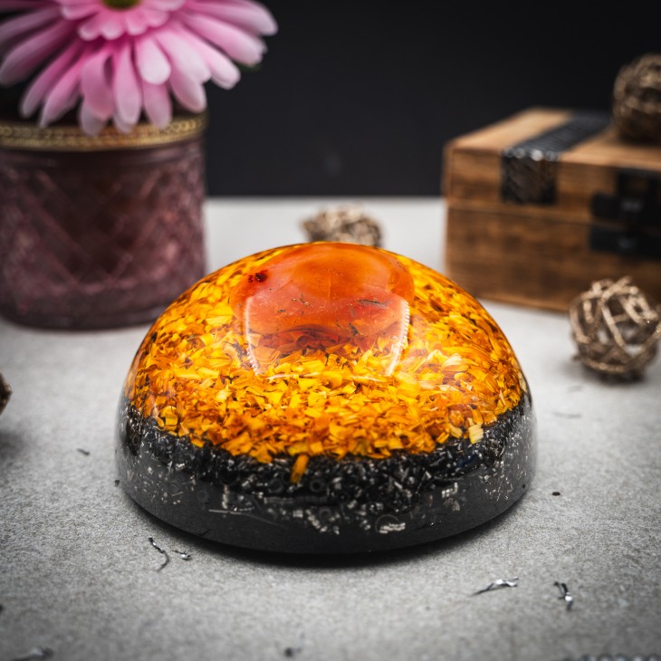 Vsak orgoniti je unikaten in čaroben. Ker delamo nekatere orgonite v večjem številu, so lahko manjša odstopanja v obliki in velikosti kristala.